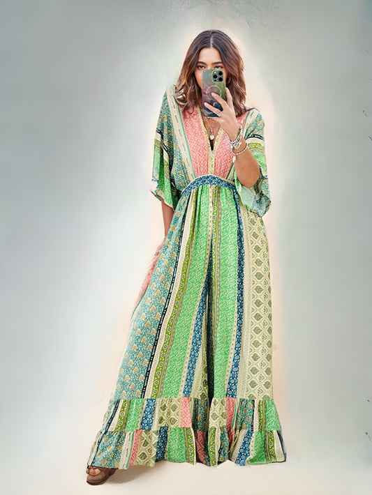 مجموعة أنيقة ذات ياقة على شكل V وسراويل واسعة